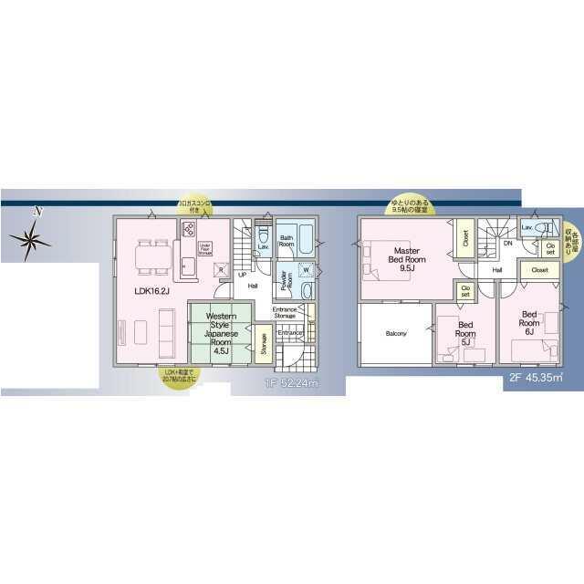 | 設備 | カウンターキッチン システムキッチン 床下収納 モニタ付インターホン ディンプルキー 防犯カメラ 複層ガラス 浄水器 3口以上コンロ 浴室暖房 浴室乾燥機 プロパンガス ルーフバルコニー 人感センサー付照明 火災警報器(報知機) 温水洗浄便座 トイレ2ヶ所 | ||